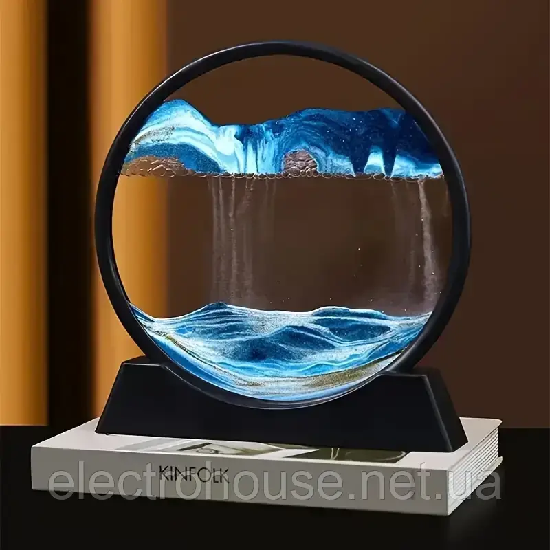 3D пісочна картина антистрес «Падаючий пісок» 19 см. чорна рамка, блакитно-білий пісок