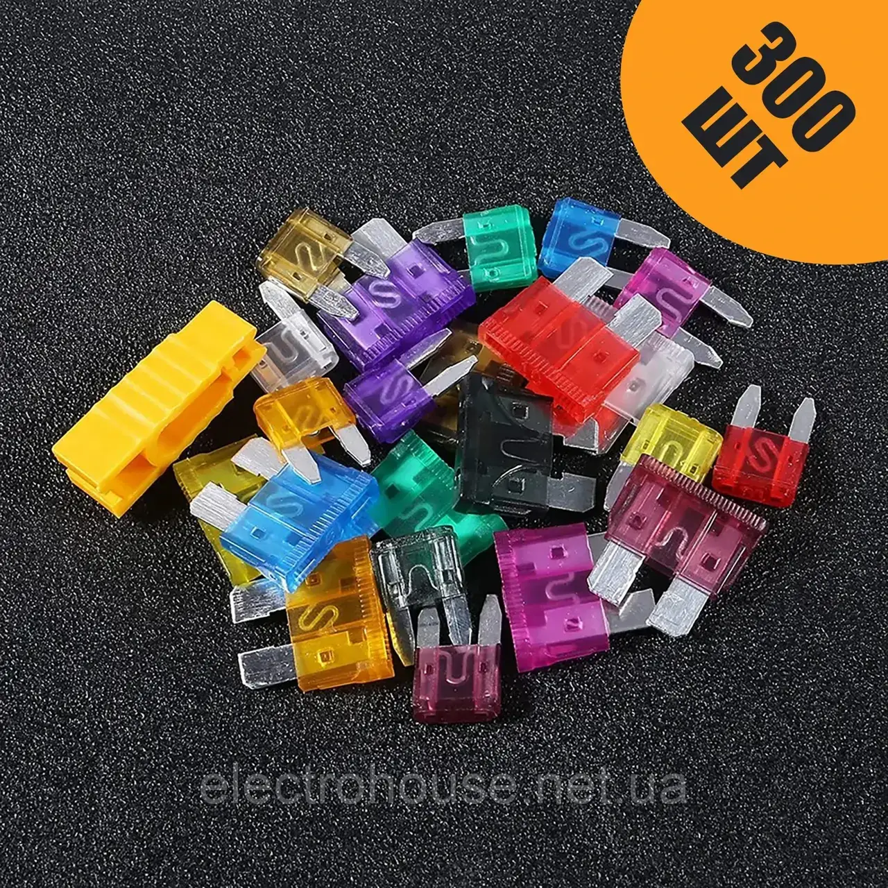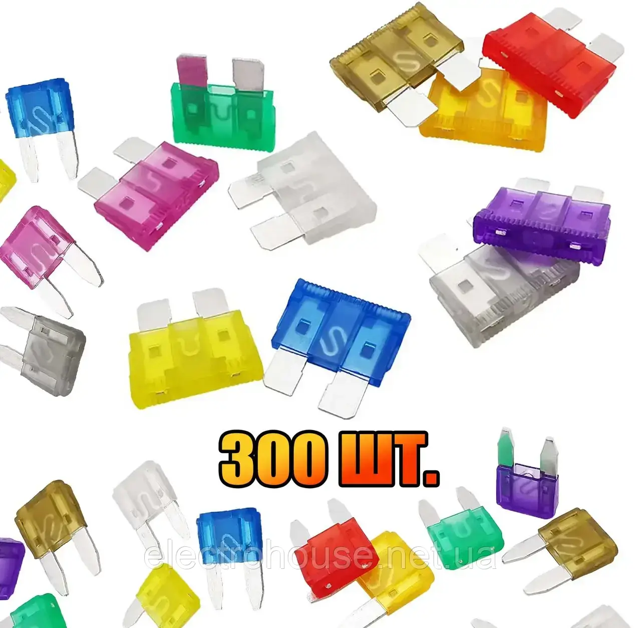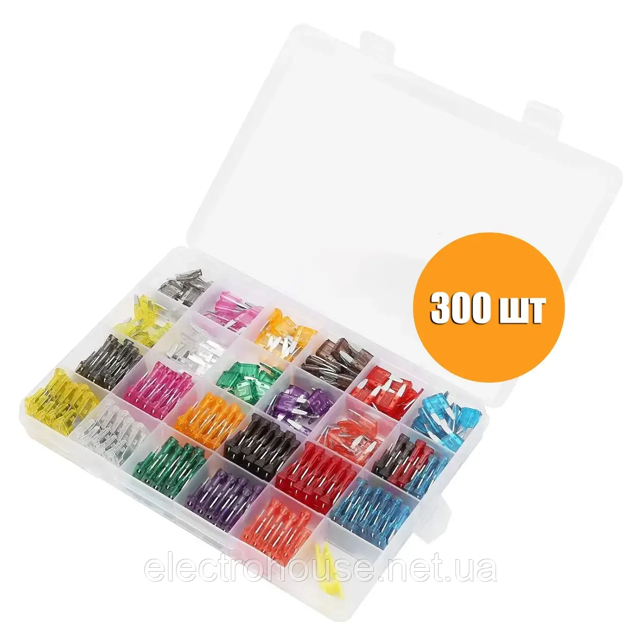 Автомобільні запобіжники 300 шт. стандартного та мінірозміру 2 А — 40 А в кейсі