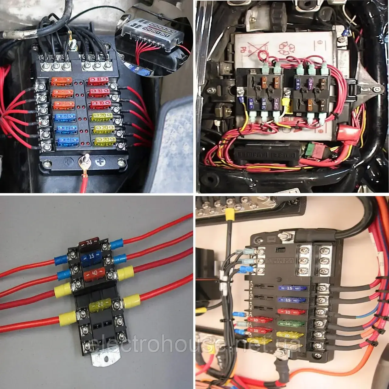 - Запобіжники мають чітке маркування сили струму та кольорове маркування для легкої ідентифікації;