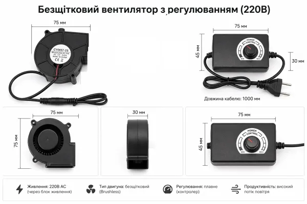 💨 Безщітковий вентилятор 220В з регулюванням швидкості (blower)