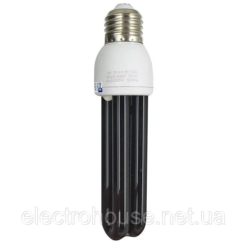 Лампа ультрафіолетова енергозберігаюча під стандартний цоколь Е27. Дана лампа використовується в якості пастки для комах, а також для інтер'єрної підсвітки, перевірки автентичності документів, вивчення мінералів і т. д.