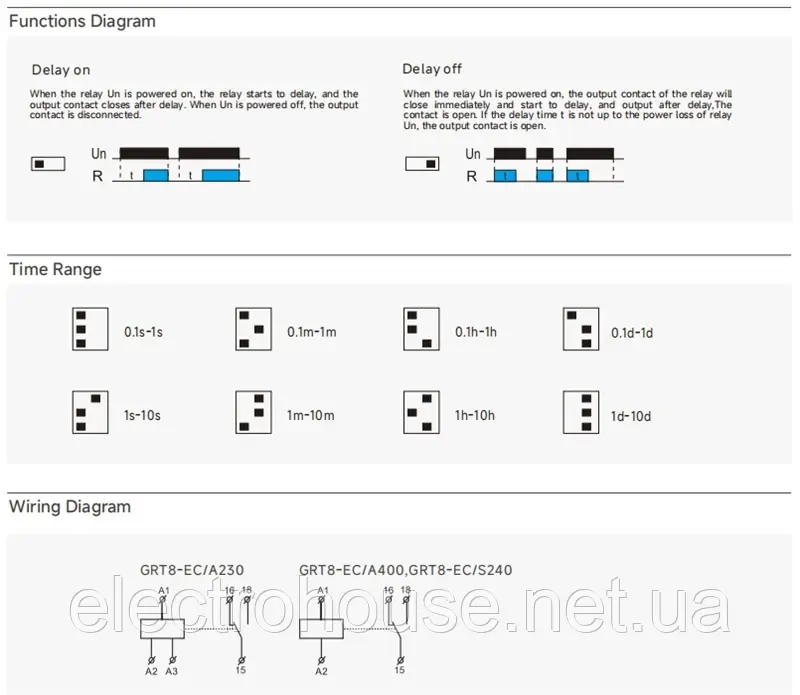 – Функція: реле таймера затримки або вимкнення затримки