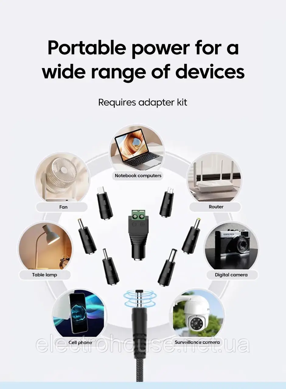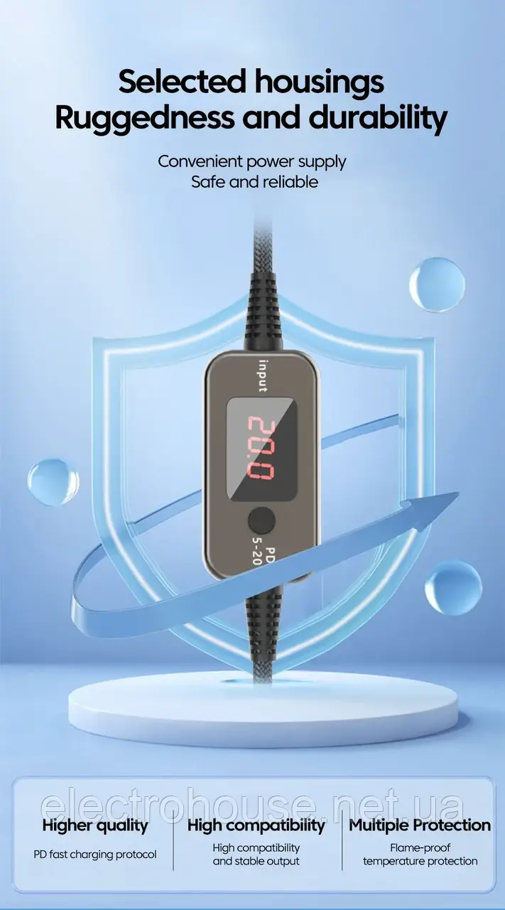Універсальне посилення від 5 до 20 В. Підвищуючий кабель перетворює 5 В типу C в 9 В або 20 В постійного струму для живлення ряду пристроїв.