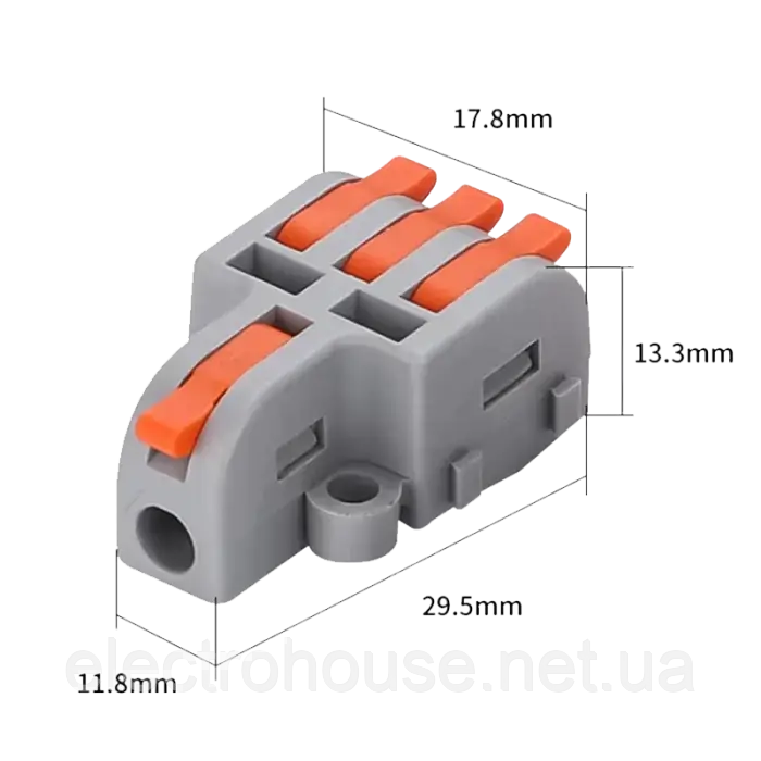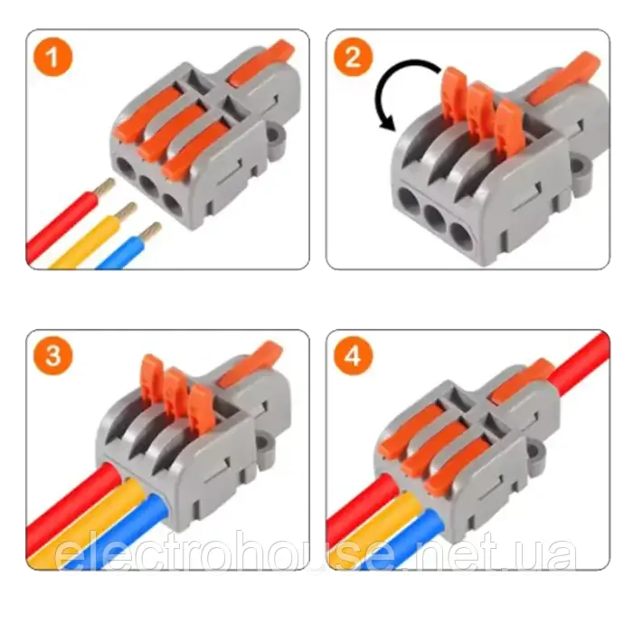 Клема безгвинтова з важелем для з'єднання проводів різного або однакового перерізу