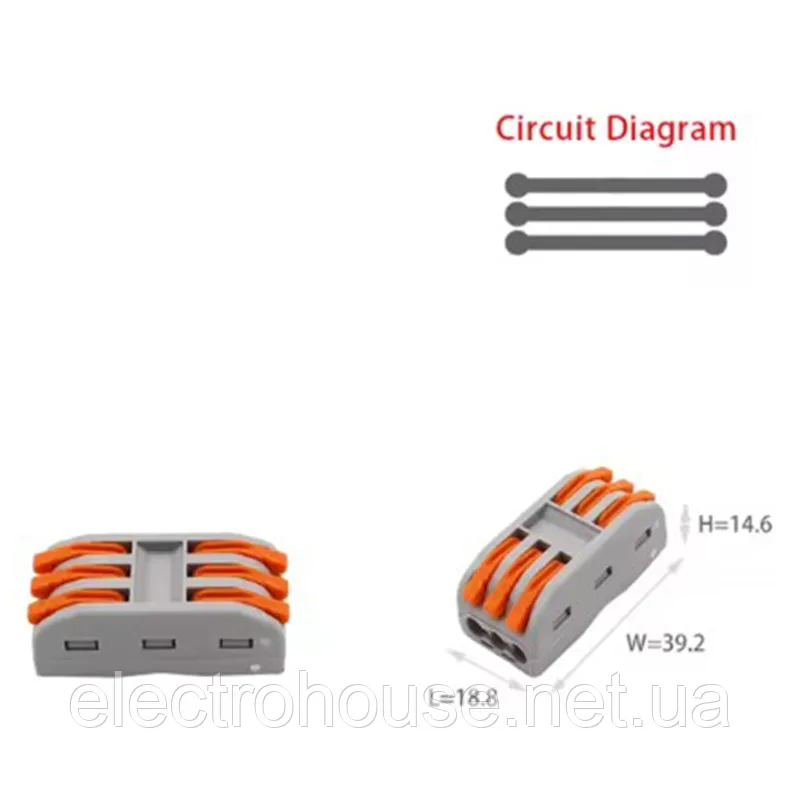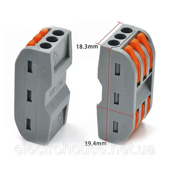 Клема безгвинтова з важелем для з'єднання проводів різного або однакового перерізу
