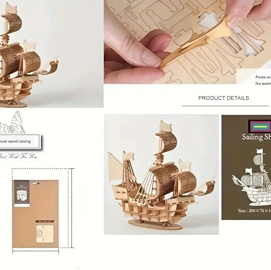 Пазл BauTech 3D дерев’яний Корабель Дерево Пазл 3D дерев’яний Корабель — це дуже цікава іграшка. Адже ви зможете зробити справжній кораблик 3D із випилених на дерев’яному аркуші деталей. Кришка фортепіано фіксується. З фортепіано йде стілець для піаніста. 3D-модель добре деталізована. Деталі випечені за допомогою лазерного різання. Деталі нормально припасовані одна під одну та добре вичавлюються. Краї деталей гладкі. Рекомендується для дітей від 6 років. Збирання такого 3D-моделі допоможе розвинути фантазію, моторику рук і посидючість. Характеристика: Матеріал: Дерево Товщина: 4 мм Вік: 6+ Комплект постачання: Пазл 3D дерев’яний корабель Тип: Пазл