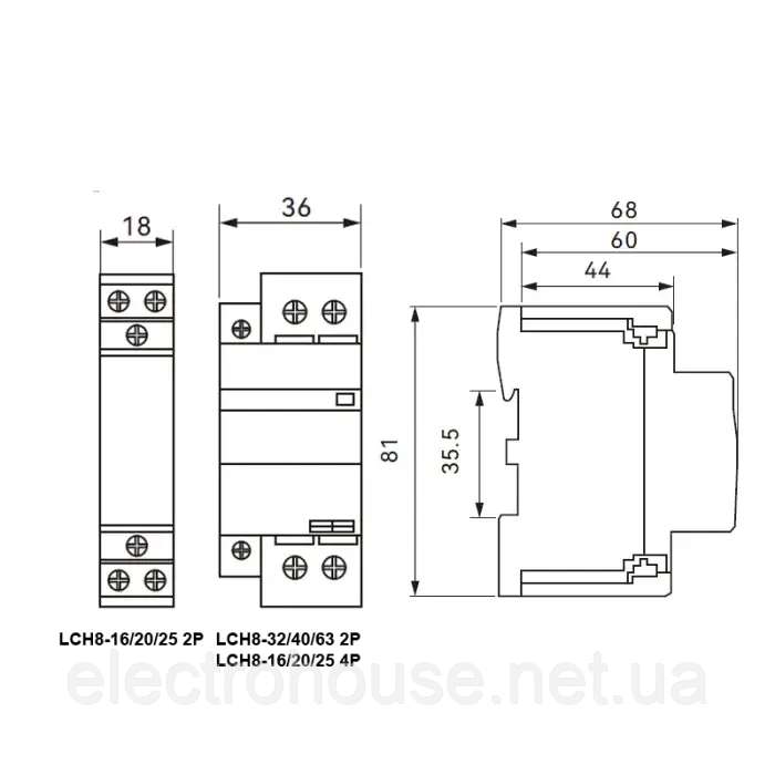 Модульний контактор призначений для комутації слабоіндуктивних навантажень в мережах змінного струму напругою 230/400 В (АС) частотою 50 Гц і номінальним струмом до 63А.