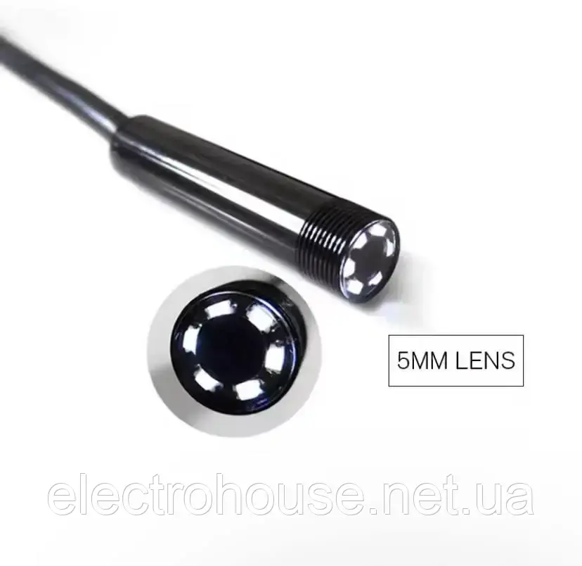 Кут огляду: 54 градуси довжина кабелю: 1 м Розмір камери: 3,5×0,55 см матриця: CMOS роздільна здатність зображення: 1/9 VGA CMOS 640×480 USB 2.0 6 світлодіодів живлення від порту micro USB гідроізоляція: IP67 регульований ZOOM барвиста картинка сумісність: Windows XP, 2003, VISTA, 7, 8, 10 або Android 6.0 або вище