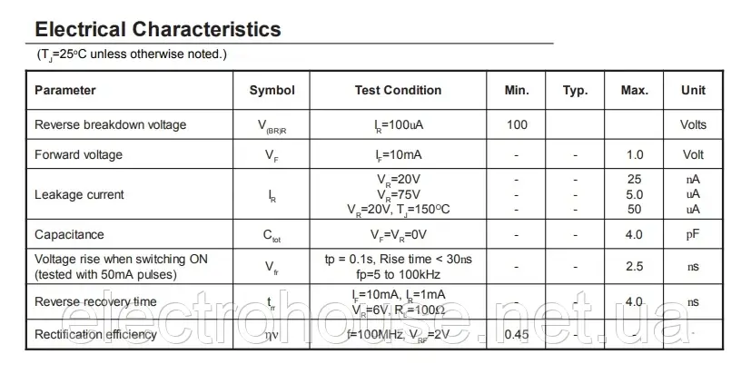 - У комплект входить: Набір 100шт діодів 1N4148/1N4007/1N5819/1N5399/1N5408/1N5822/FR107/FR20725 шт. x1N4148 Діоди 25 шт. x 1N4007 діодів10 шт. x 1N5819 діодів 10 шт. x 1N5399 Діоди 10 шт. x FR107 діодів 10 шт. x FR207 діодів 5 шт. x 1N5408 діодів 5 шт. x 1N5822 діоди