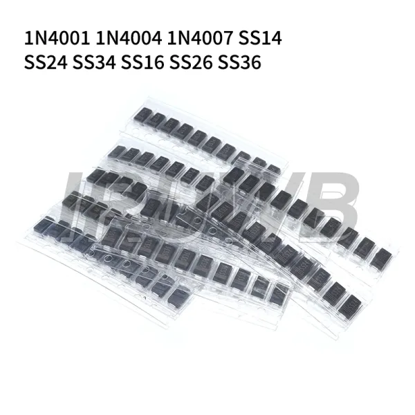 Набір 90шт діодів SMD 1N4007_1N4001_1N4004_SS14_SS24_SS34_SS16_SS26_SS36