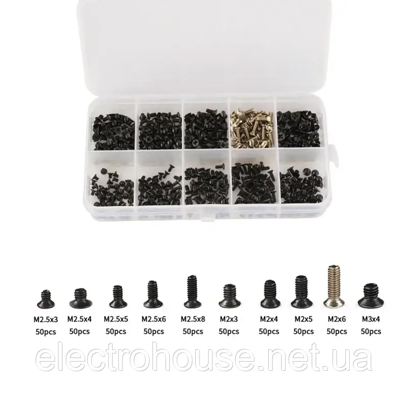 Набір гвинтів 500 шт. M2,3, M2.4, M2,5, М2,5*3,5, М2,5*4, М2,5*5, М2,5*6, М2,5*8, М3*3