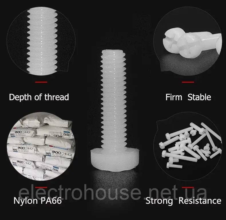 Набір Black нейлоновий пластиковий болт з хрестоподібним шліцем та круглою головкою