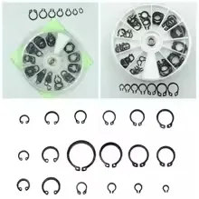 Набір зовнішніх стопорних кілець (circlips) — надійне рішення для фіксації деталей на валах та осях. Використовуються для запобігання осьового зміщення елементів у механізмах.