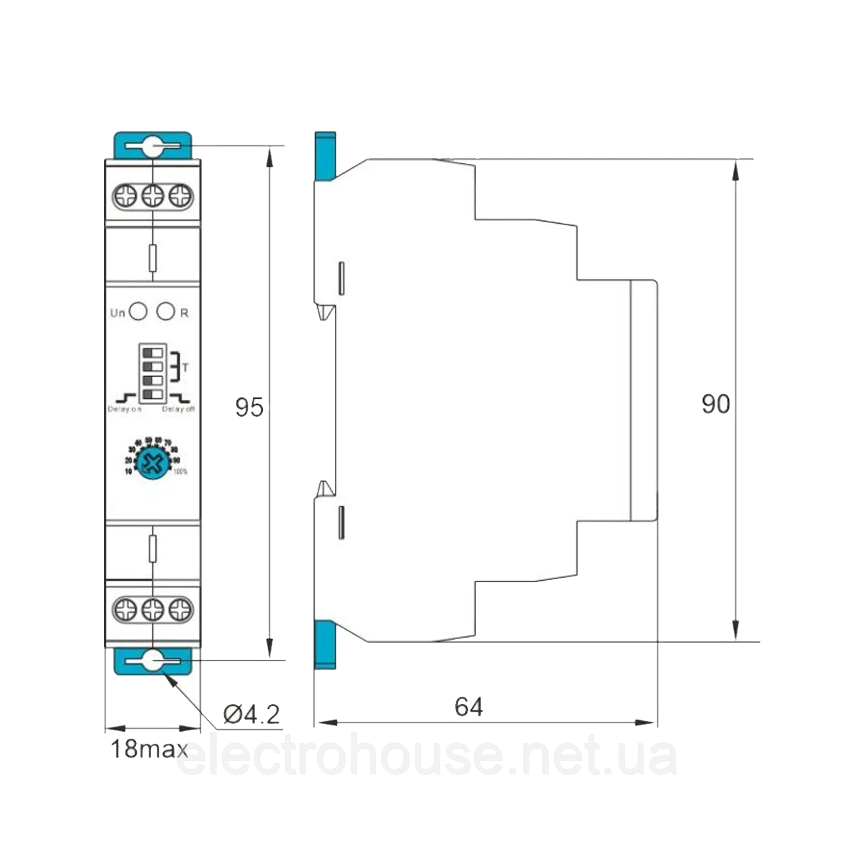Реле часу з двома функціями можна використовувати для промислового обладнання, керування освітленням, керуванням нагрівальним елементом, керуванням двигуном і вентилятором, із двома режимами затримки, а діапазон затримки охоплює від 0,1 секунди до 10 днів. Підтримує два види робочої напруги AC230В, AC/DC24В. Ультраширокий діапазон затримки, 0,1 секунди – можна встановити 10 днів. Про робочий стан реле свідчить світлодіодний індикатор. Надзвичайно малий розмір, ширина лише 18 мм, монтаж на DIN-рейці 35 мм. |