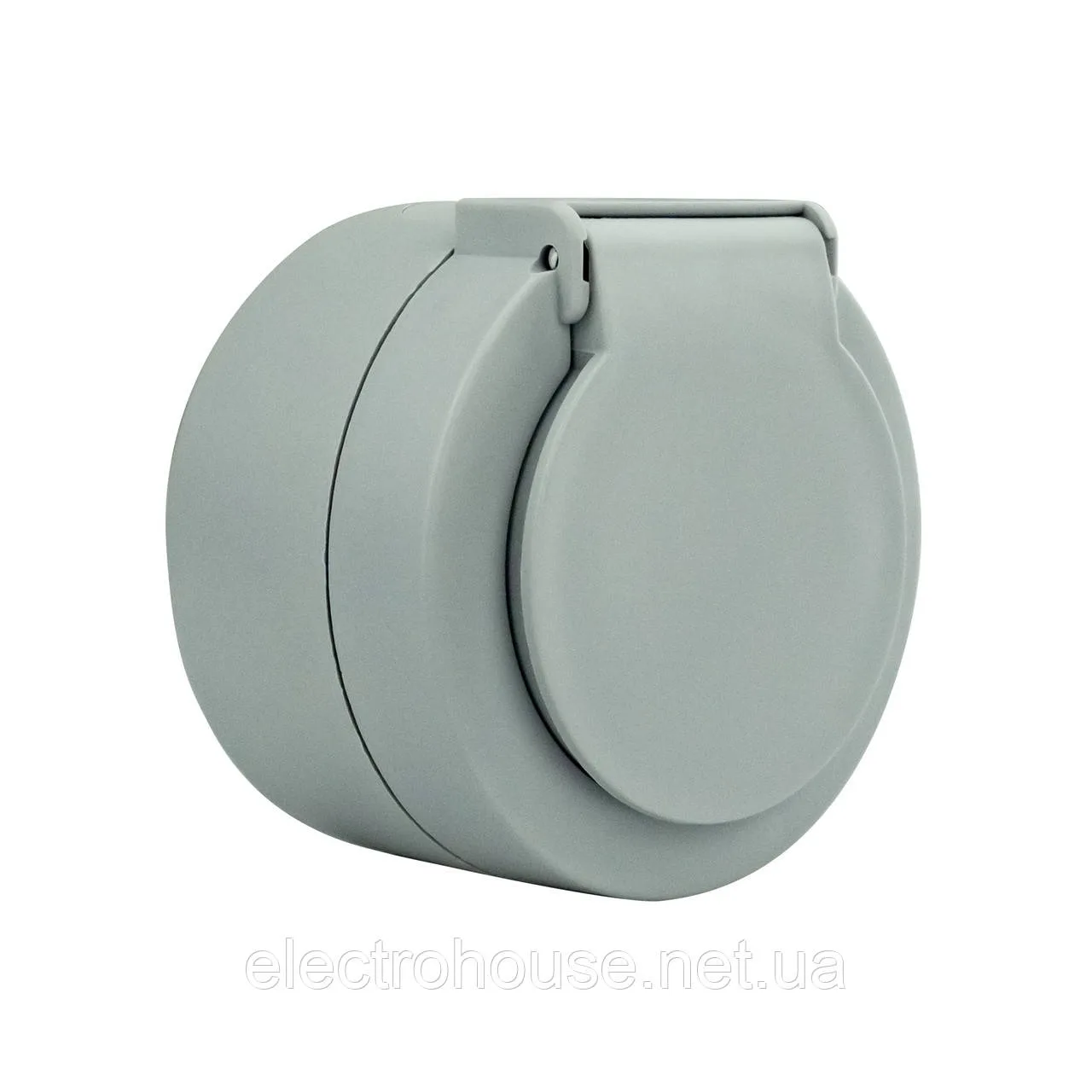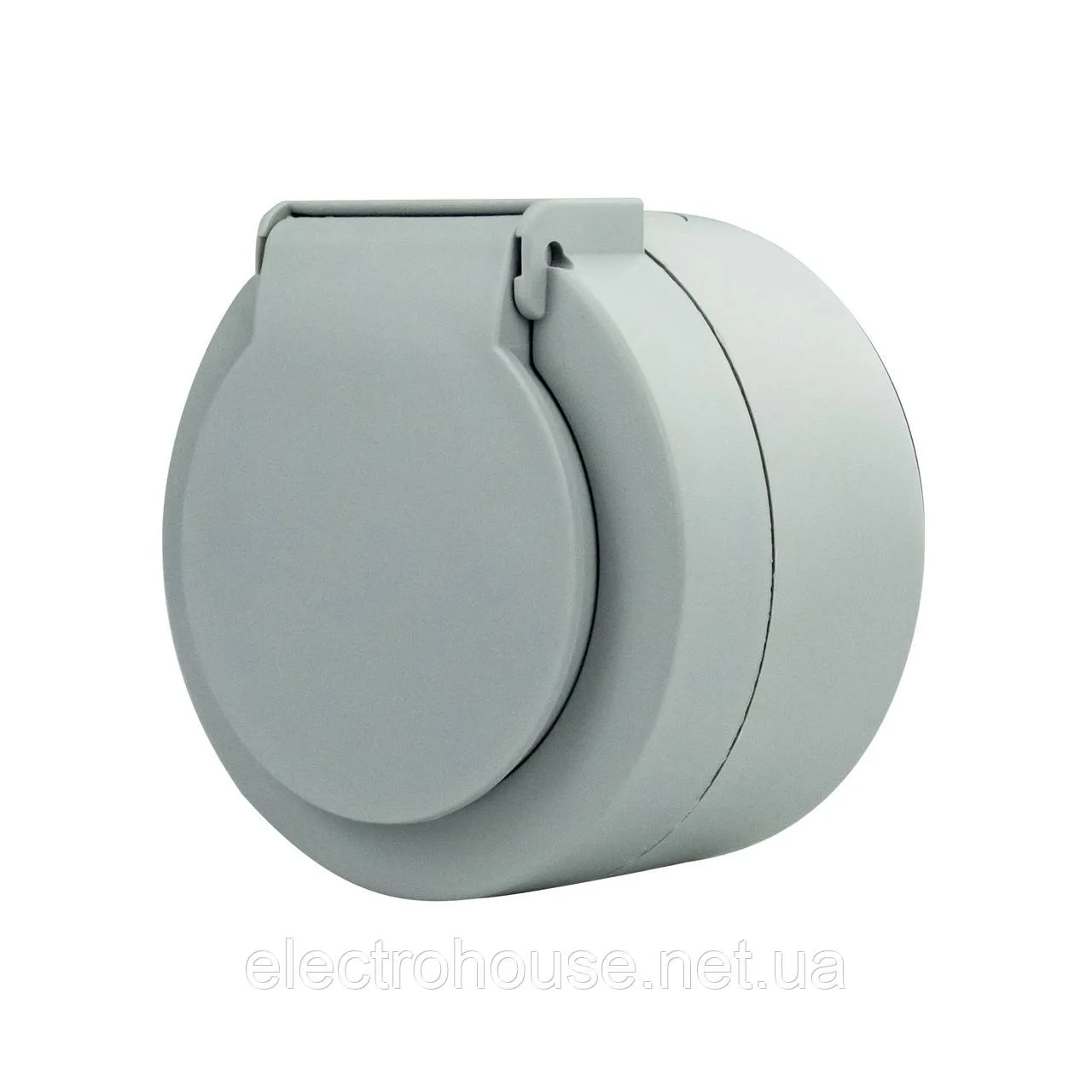 Розетка накладна 1-а з кришкою та з/з сіра 16А xOne