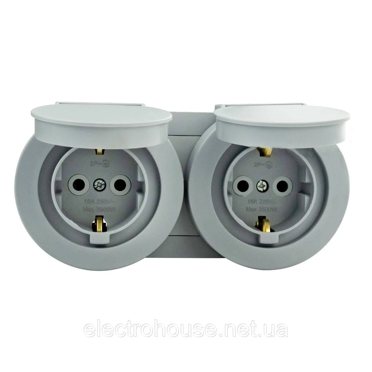 Розетка накладна 2-а з кришкою та з/з сіра 16А xOne