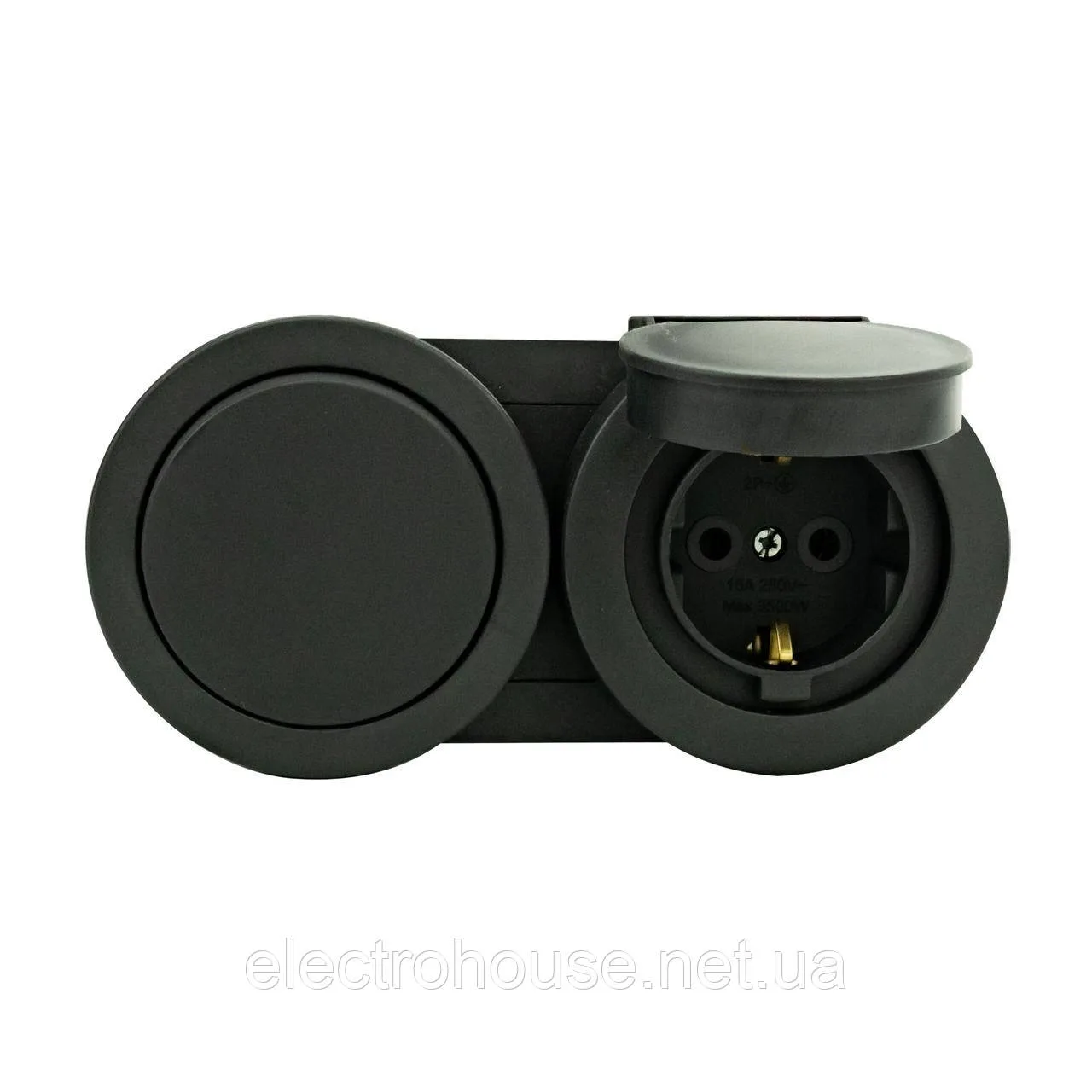 Розетка накладна з/з 16А + вимикач 1-кл кришкою антрацид 16А xOne