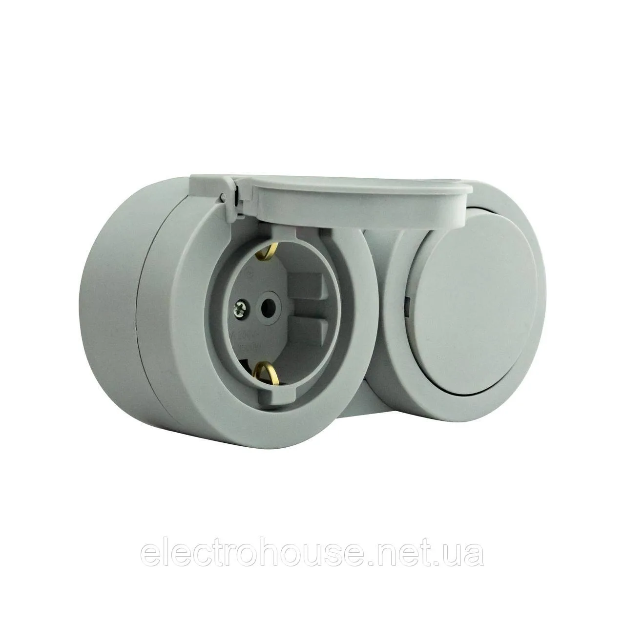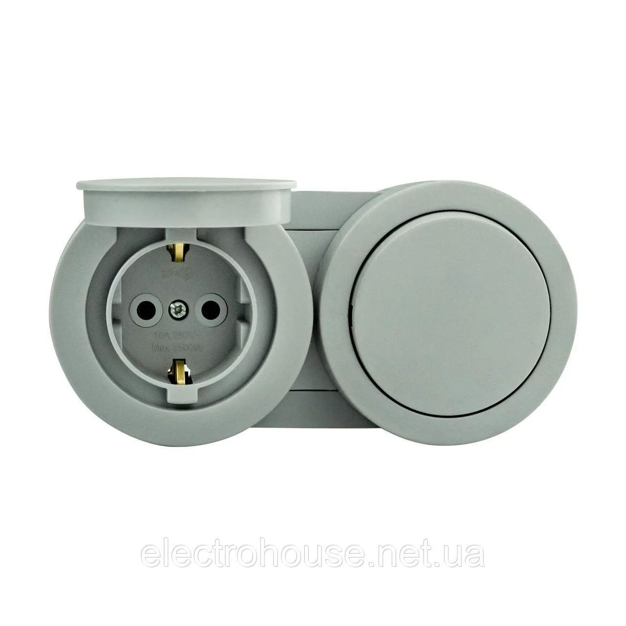 Розетка накладна зз 16А + вимикач 1-кл кришкою сіра 16А xOne