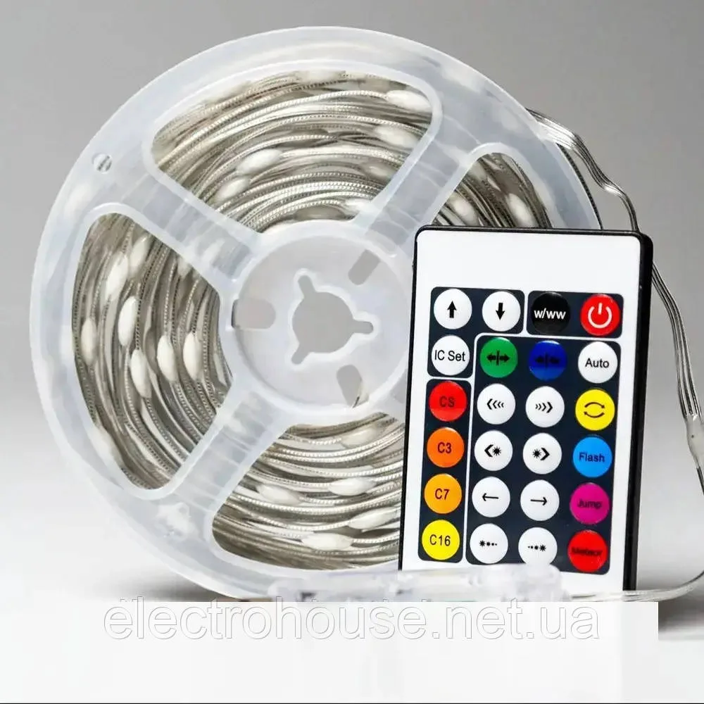 Світлодіодна стрічка RGB 5050 з пультом дистанційного керування є сучасним та стильним способом створити освітлення у приміщенні. Завдяки своїй довжині в 10 метрів та технології RGB вона дозволяє створювати різноманітні колірні ефекти, налаштовувати інтенсивність та тон кожного кольору. Пульт дистанційного керування забезпечує зручний доступ до параметрів стрічки, включаючи зміну кольору та яскравості.