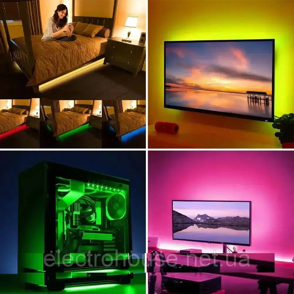 Зручне живлення від USB робить стрічку універсальною для використання у різних місцях, таких як домашній офіс, кімната, телевізор чи автомобіль. Силіконова основа, що самоклеїться, дозволяє легко кріпити led стрічку до різних поверхонь і швидко налаштовувати її розташування. А гнучка та неонова конструкція дозволяють стрічці легко адаптуватися до різних поверхонь та форм.