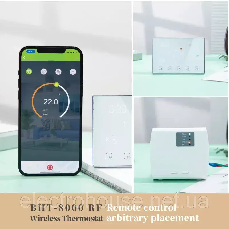Приймач підключається до котла (сухий контакт) або нагрівального кабелю теплої підлоги. Сам контролер ви можете розмістити у будь-якому зручному для вас місці.