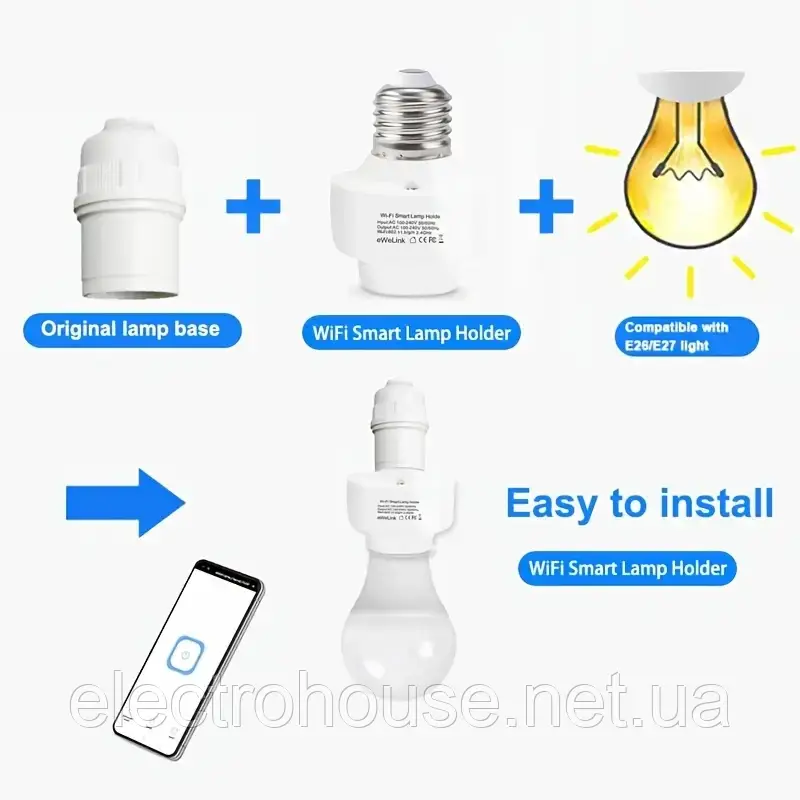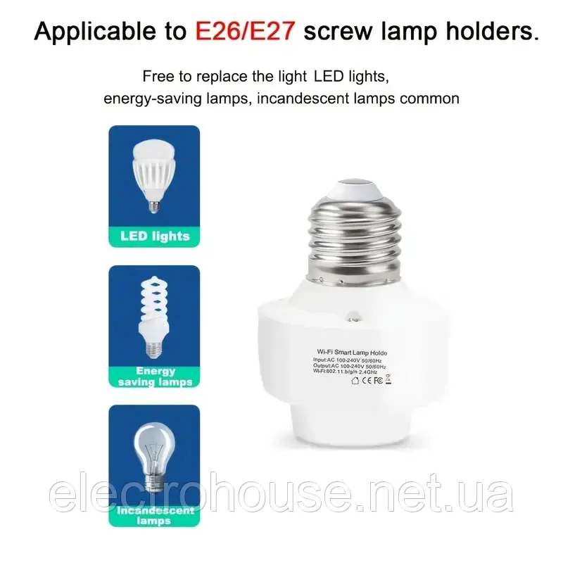 Призначена для дистанційного та автоматизованого керування (вмикання та вимкнення) електричних ламп із цоколем E27 і моніторингу їхнього споживання. Керуйте всіма вашими лампочками онлайн, через безплатний мобільний застосунок SmartLife (завантажуйте з Google Play або App Store). Налаштуйте розклад і тимчасові проміжки вмикання і вимкнення світла, з комфортом для себе. Створюйте складні сценарії роботи цоколя за допомогою Tuya Smart. Діліться керуванням світла всією сім'єю.