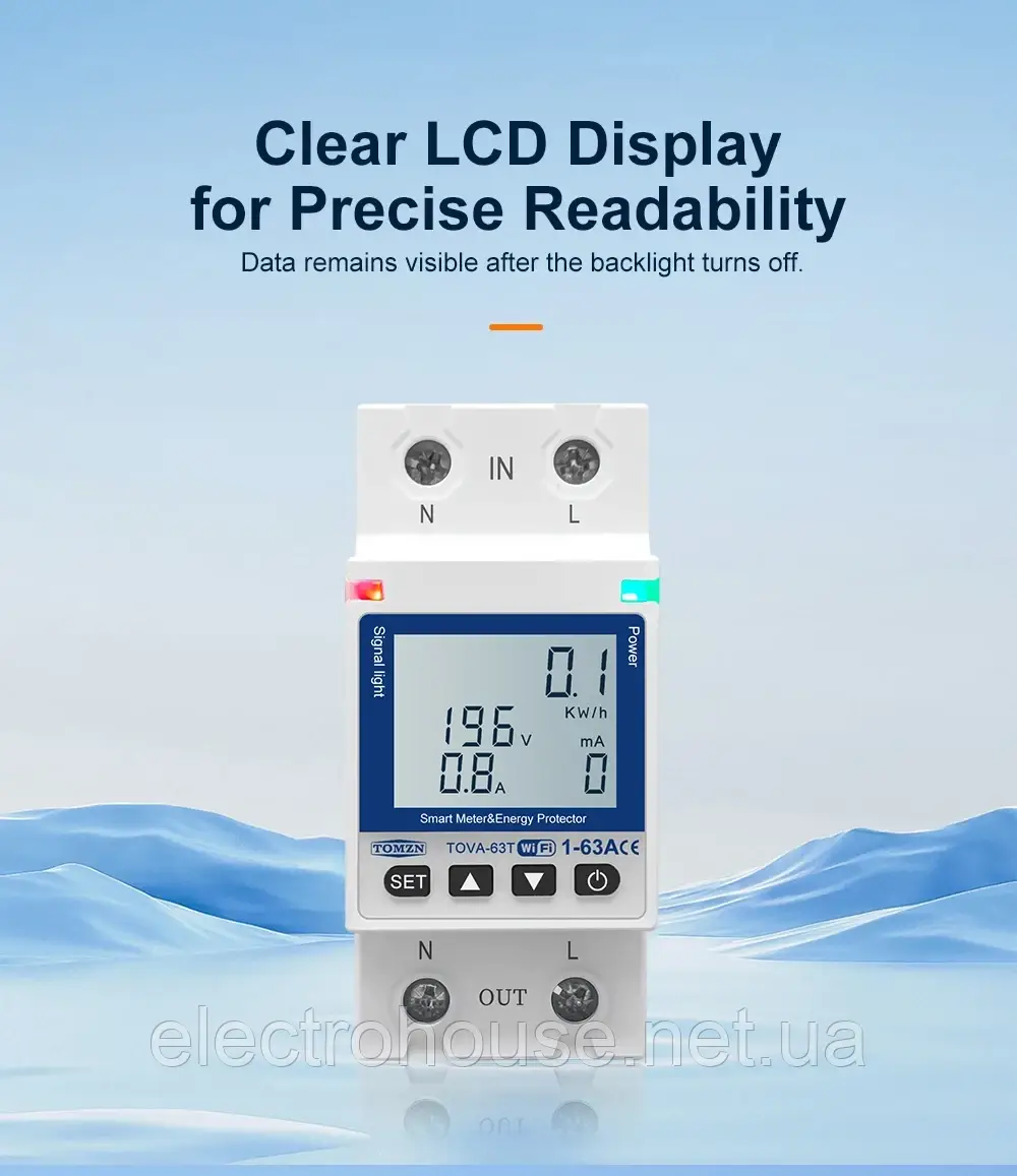 - 10. Захист від перевантаження струмом 1A-63A (регульований) (за замовчуванням: 63A)