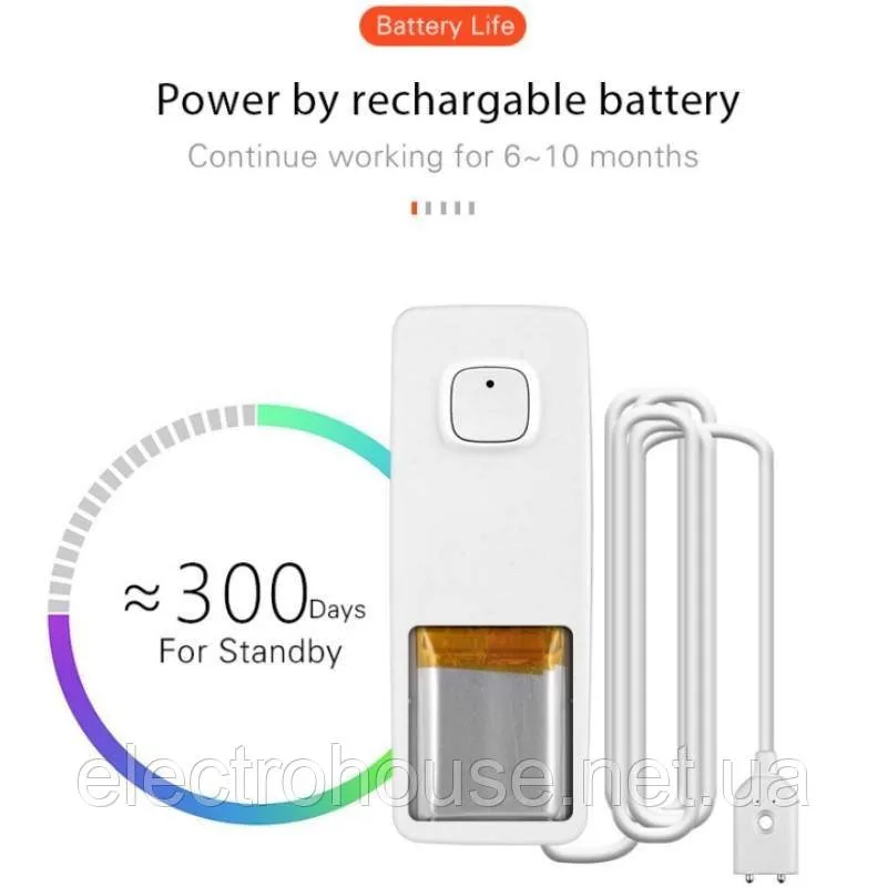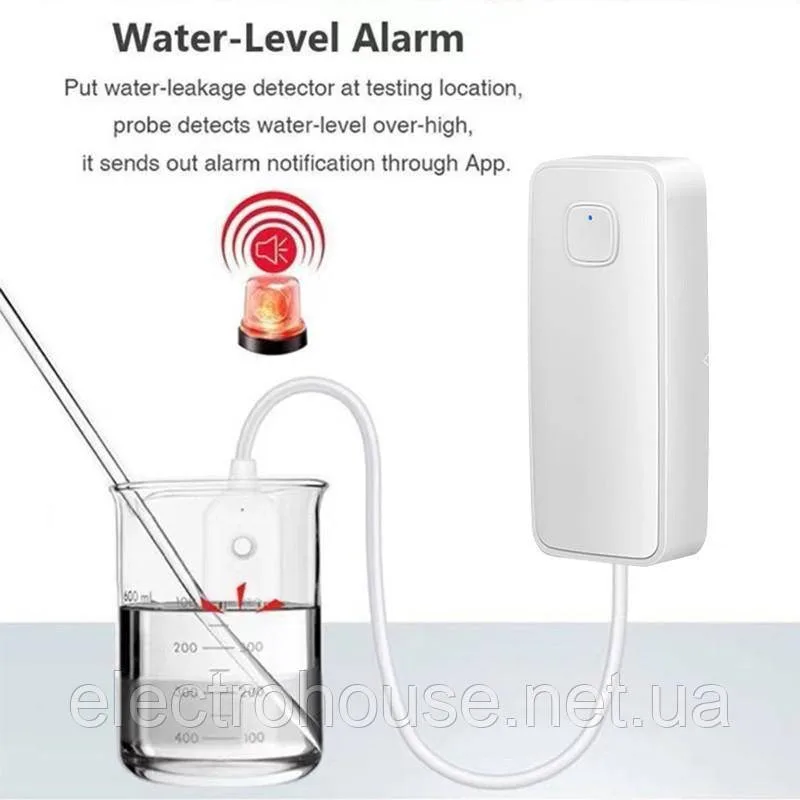 За допомогою чутливого зонда виявлення захистіть свій будинок та цінні речі від дратівливих витоків води та небезпечних повеней, будь то дірява раковина під шафою у ванній кімнаті, лопнула труба у вашому підвалі тощо. або суворі погодні явища. Управління мобільним додатком, підключеним до мережі через wifi, пульт дистанційного керування в будь-який час. Сигналізація про витік води в трубопроводі — встановіть датчик близько до землі, коли виявить, що під землею є вода, спрацює тривога. Сигналізація за рівнем води — помістіть датчик витоку води в позицію виявлення, зонд виявить, що рівень води занадто високий, а через застосунок надішлеться сповіщення про тривогу. ПРОФЕСІЙНИЙ IP 67 ВОДОНЕПРОНИКНИЙ – Панель дозволяє їй нормально працювати, запобігаючи пошкодженню внутрішніх електронних компонентів вологою, Наприклад, поверхня, яка бризкає або навіть покривається водою, не проблема. Велике попередження про витік води для будинку, квартири, кухні, ванної кімнати, складу, офісу, лабораторії, готельного номера, гаража тощо. Датчик легко встановити і дуже простий у використанні, ви обов'язково отримаєте потрібну якість та очікування, надійну роботу в невеликому та компактному корпусі.